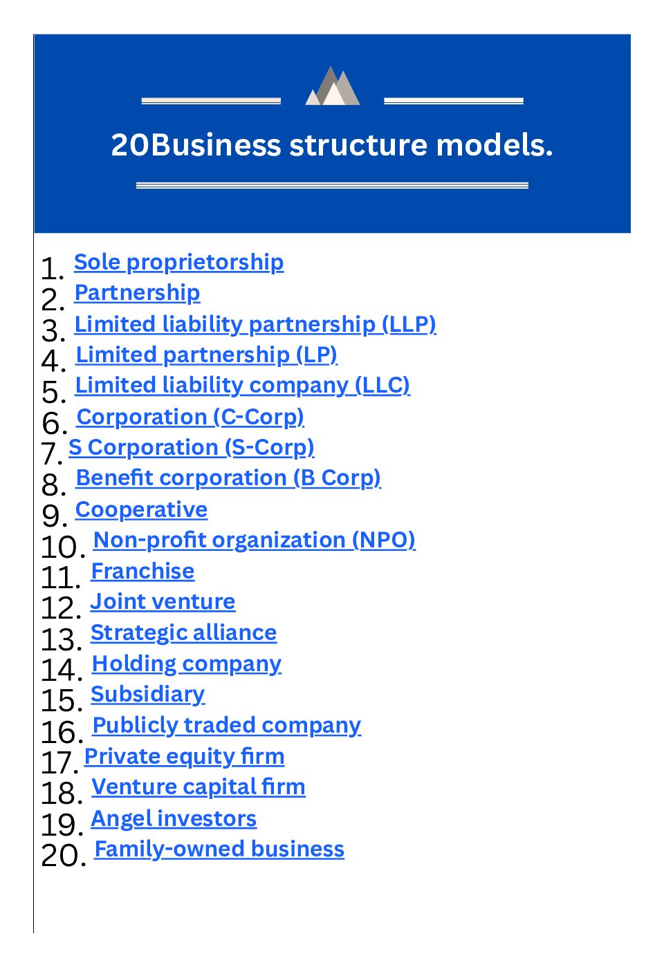 <20 Business Structure Models.(plus how to choose one)> Sole proprietorship [...]
